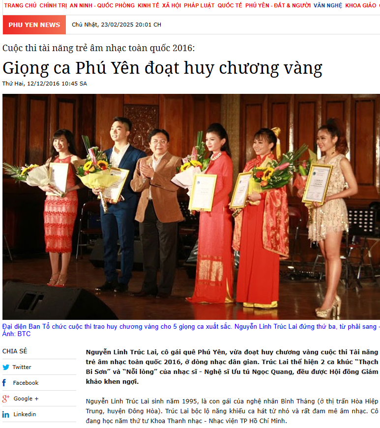 – Quán quân cuộc thi Sao Mai Miền Nam 2017